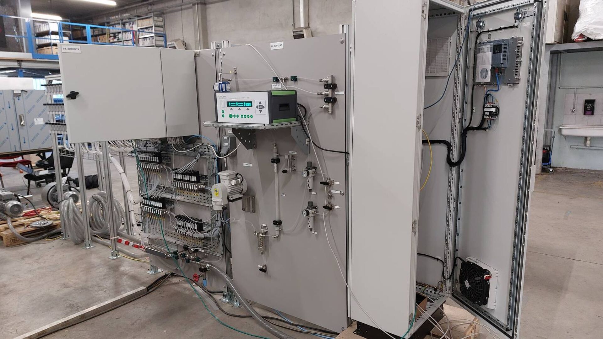 Comme cet ensemble d’analyse de gaz composé de 2 panoplies de 48 vannes chacune qui sont ouvertes successivement ou aléatoirement. Lorsqu’ ‘une vanne s’ouvre, l’automate pilote un analyseur qui analyse donc la voie ouverte et renvoie ces résultats à l’automate pour traitement.