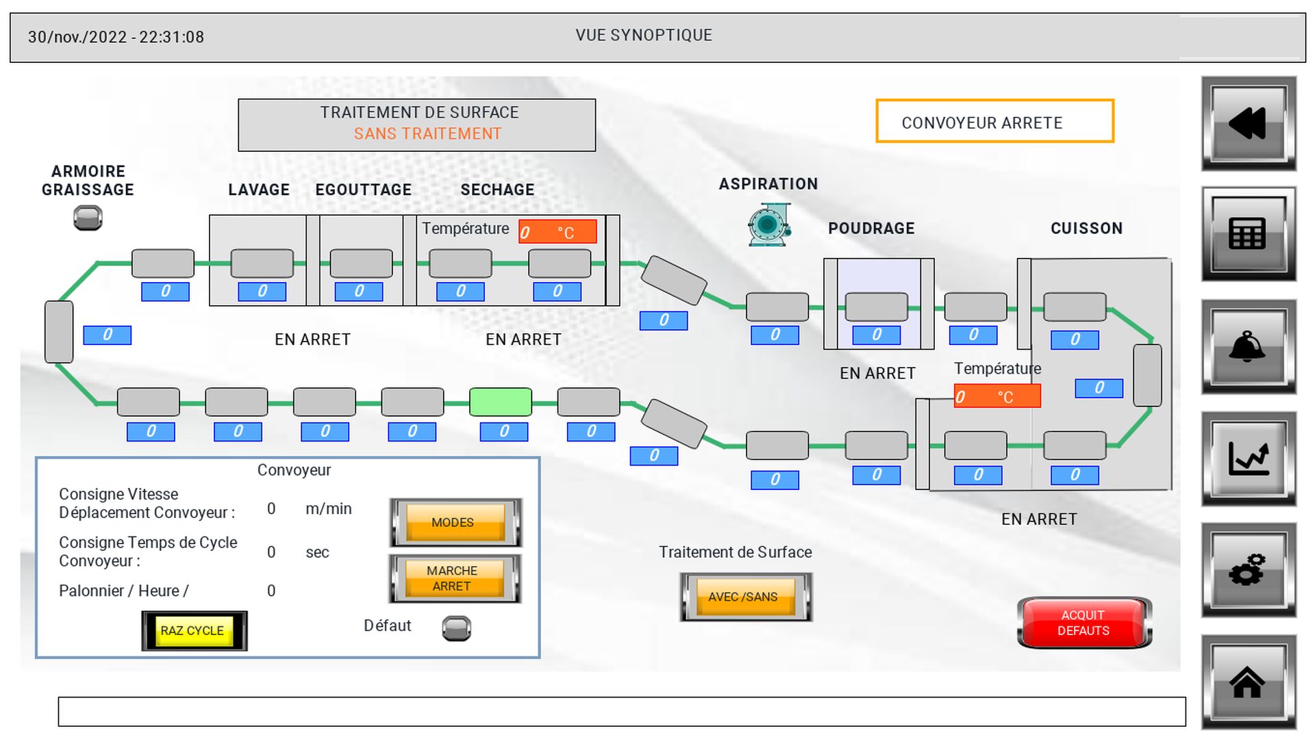 Reprogrammation complète d'une supervision programmée à l'origine sous Wizcon et reconfigurée avec Jmobile Runtime de Exor.